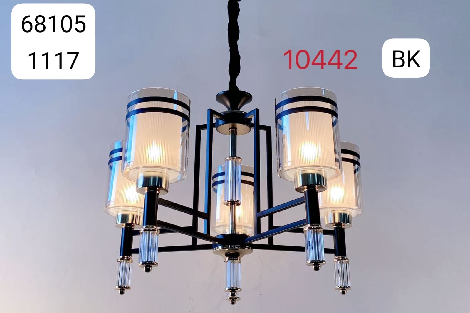 Black Geometric 5-Arm Glass Chandelier