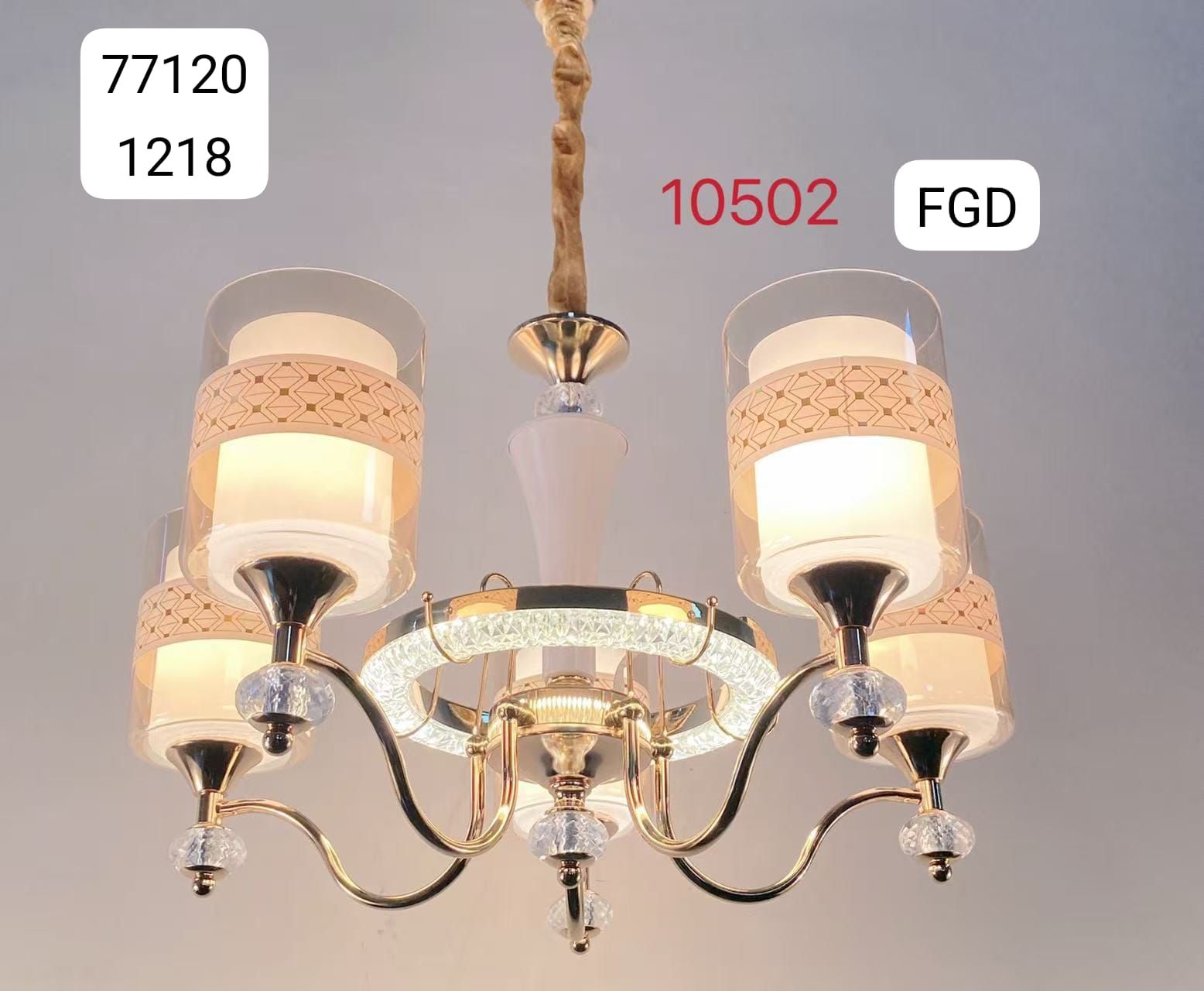 Black Round-Ring Amber Glass 6+1 Chandelier